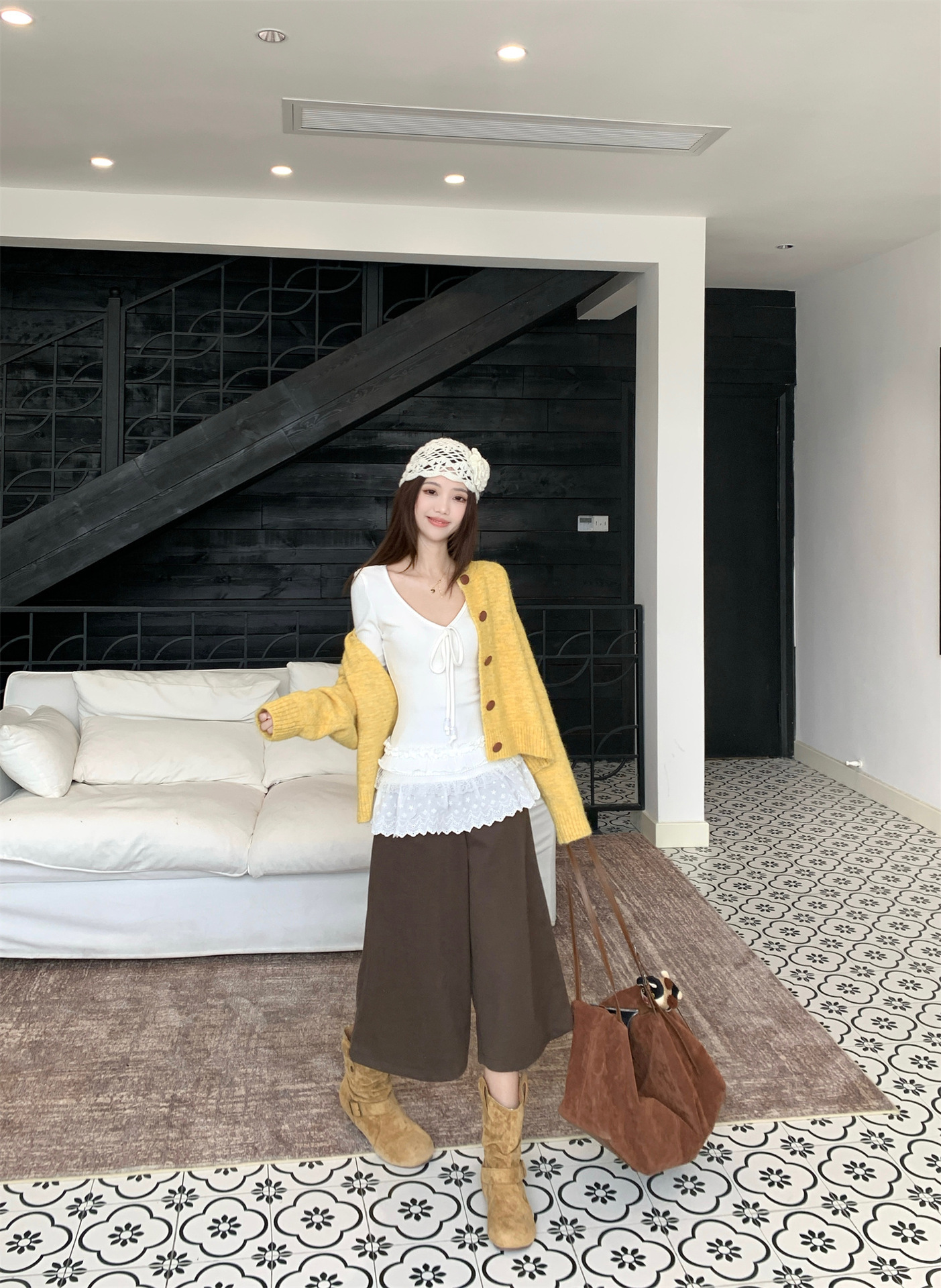 Popular elements: Lace-up, solid color